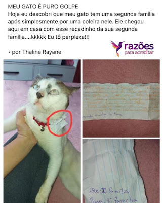 “Olá, aqui é a 2ª família do Tang. Acabamos de descobrir que ele estava dando um golpe na gente. Ele vem aqui toda manhã buscar seu café, estávamos querendo adotá-lo, mas logo sacamos que ele é bem tratado pra ser de rua. Nesse exato momento descobrimos que ele já tem dono(a), por causa da sua coleira vermelha. Beijos! – Segunda família do Tang.” 😂❤️”.