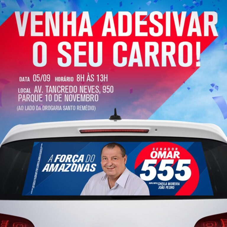 Os apoiadores do Senador Omar Aziz (PSD-AM) poderão aproveitar o feriado nesta segunda-feira, 05/09, para participar do primeiro adesivaço oficial da campanha do Senador da República. A equipe estará de prontidão para adesivar todos os carros de 8h a 13h, na avenida Tancredo Neves, n⁰ 950, bairro Parque 10, zona Centro-sul de Manaus.