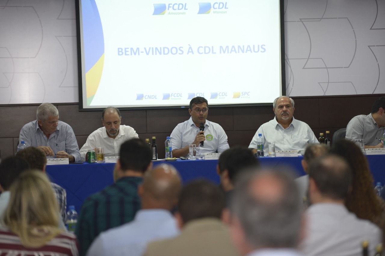 O governador e candidato à reeleição, Wilson Lima (União Brasil), apresentou aos membros da Câmara de Dirigentes Lojistas (CDL Manaus), nesta segunda-feira (26/09), o seu plano de governo para a próxima gestão. Do presidente da CDL Manaus, Ralph Assayag, Wilson recebeu as sugestões dos representantes do comércio.