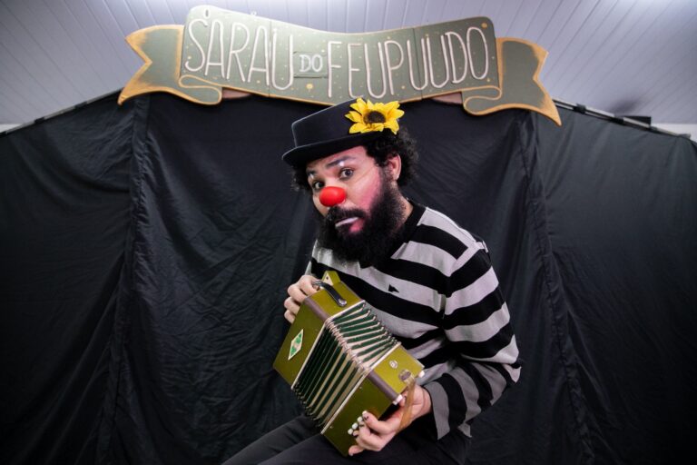“O Sarau do Feupuudo” abre a mostra competitiva Jurupari Infâncias e traz o palhaço silencioso e mal-humorado que utiliza de gestos e a Língua Brasileira de Sinais (Libras) para se comunicar e jogar com os espectadores. Durante 55 minutos, o público faz uma imersão na poética do personagem.