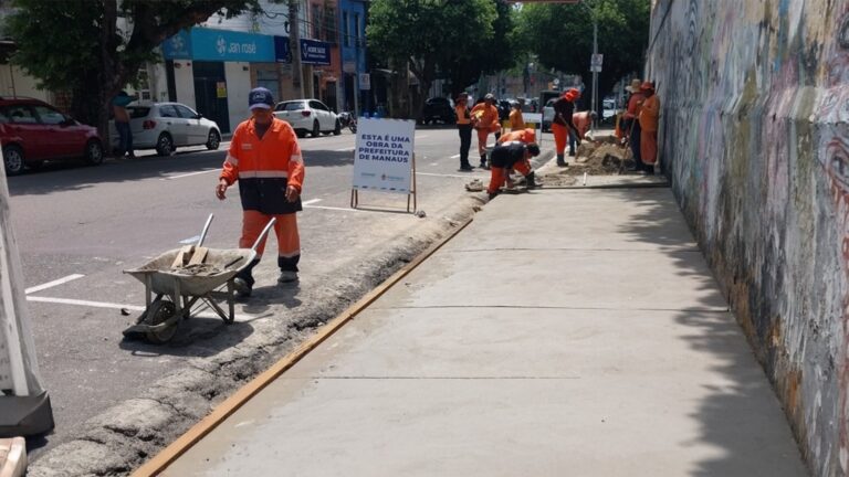 A Prefeitura de Manaus, por meio da Secretaria Municipal de Infraestrutura (Seminf), realiza a revitalização do passeio público da avenida Ramos Ferreira, no Centro, zona Sul da cidade. A intervenção, iniciada nesta terça-feira, 14/10, abrange cerca de 100 metros de calçada em concreto, devolvendo segurança, mobilidade e acessibilidade a quem circula pela região.