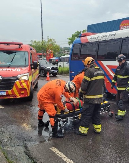 O Corpo de Bombeiros Militar do Amazonas (CBMAM) foi acionado para atender a uma ocorrência. Conforme a equipe, as dez vítimas estavam retidas dentro do micro-ônibus e foram resgatadas após o serviço de desencarceramento realizado por militares, que precisaram remover a porta do veículo.