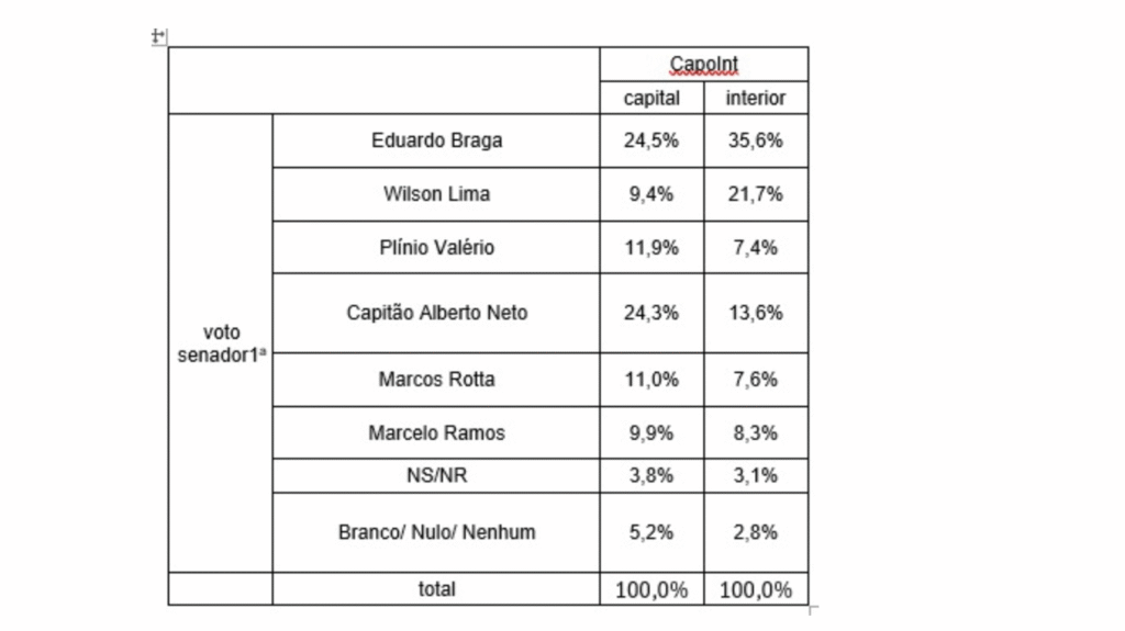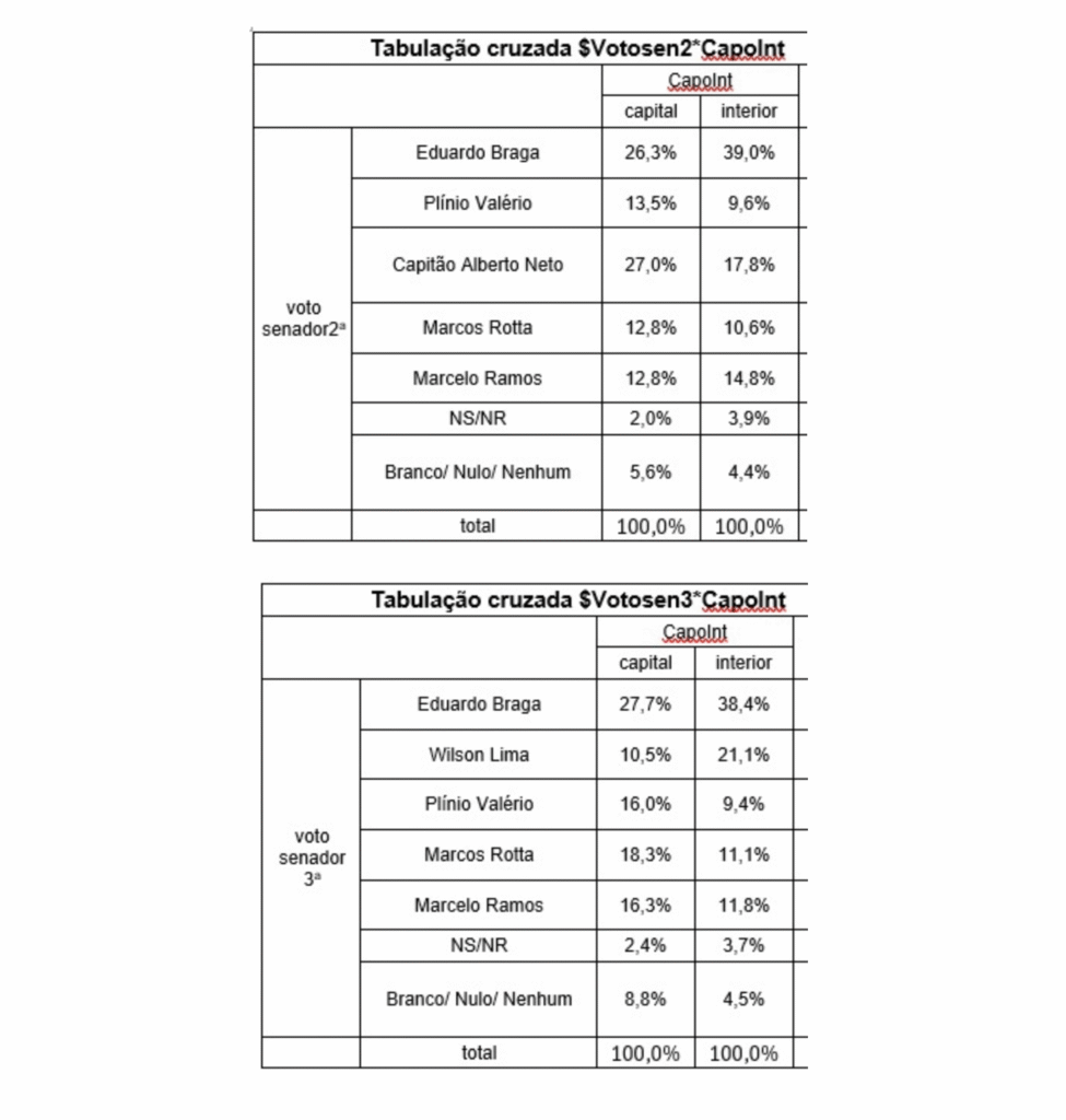 O dado mais simbólico da nova pesquisa é a virada em Manaus. Braga passou a liderar também na capital, ultrapassando o deputado federal Capitão Alberto Neto (PL), que vinha ocupando a primeira colocação entre os eleitores manauaras nas sondagens anteriores.