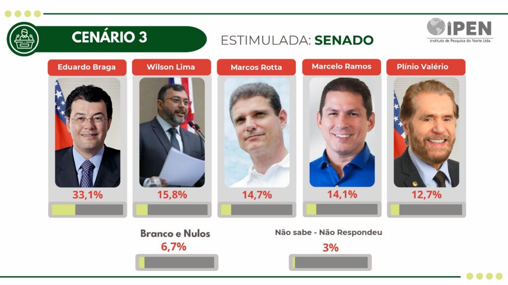 Encomendado pelo G6 — grupo formado pelo BNC, Único, Atual, além dos portais de Mário Adolfo, Marcos Santos e Blog do Hiel Levy —, o levantamento do IPEN indica que a corrida ao Senado deverá ser uma das mais disputadas do ciclo eleitoral de 2026 no Amazonas. Com figuras de forte presença regional e um ambiente político em transformação, o Estado se prepara para um embate que promete dominar a pauta ao longo de 2025.