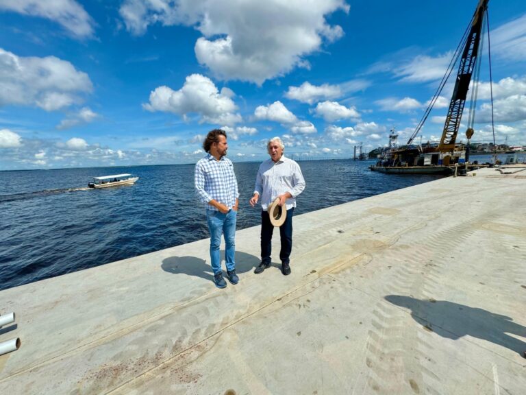 A prefeitura avança na conclusão do primeiro píer turístico da capital amazonense, que será instalado no complexo de São Vicente, no início da avenida 7 de Setembro, Centro, zona Sul. O píer faz parte da primeira etapa das intervenções do “Nosso Centro”, lançado pela gestão do prefeito David Almeida, em 2021, e em fase de finalização para entrega.