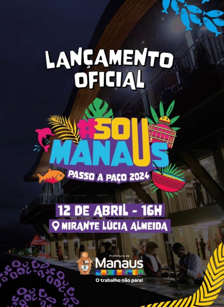 A Prefeitura de Manaus, por meio da Fundação Municipal de Cultura, Turismo e Eventos (Manauscult), fará o lançamento do #Sou Manaus Passo a Paço 2024, nesta sexta-feira, 12/4, às 16h30, no mirante Lúcia Almeida, localizado no Centro Histórico de Manaus.