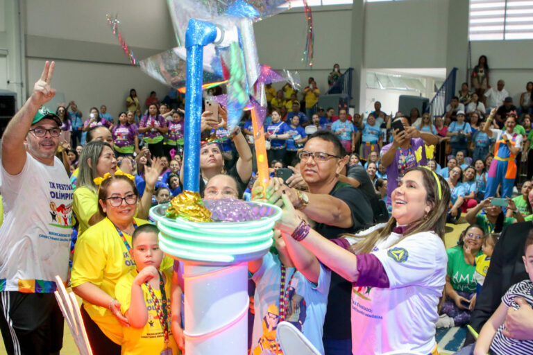 Com o tema “Brincadeiras do Passado: Conectando Gerações, Criando Memórias”, a Prefeitura de Manaus, por meio da Secretaria Municipal de Educação (Semed), realizou, nesta sexta-feira, 17/5, a abertura da 9ª edição do Festival Olímpico da Educação Infantil. O evento aconteceu no Centro Integrado Municipal de Ensino (Cime) Lúcia Almeida, no bairro Aleixo, zona Norte, e reuniu estudantes e professores de creches, Centros Municipais de Educação Infantil (Cmeis) e escolas da rede municipal de educação.